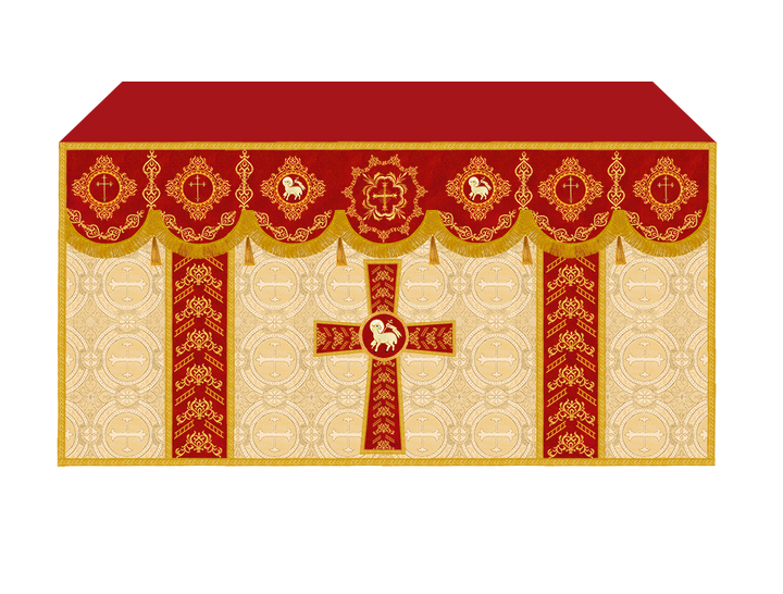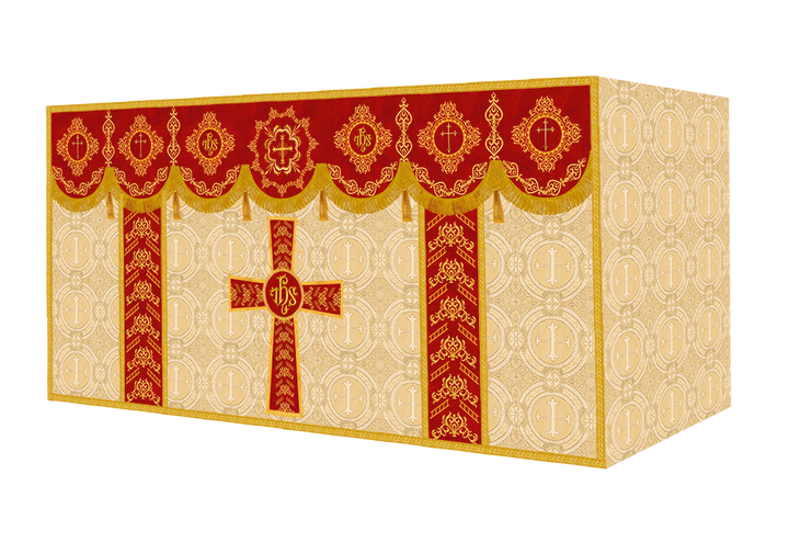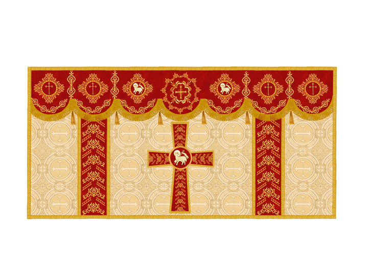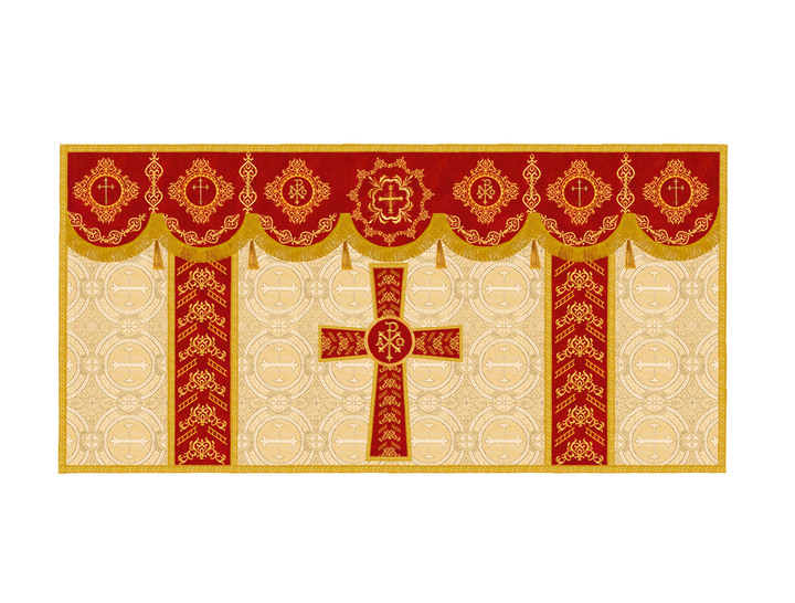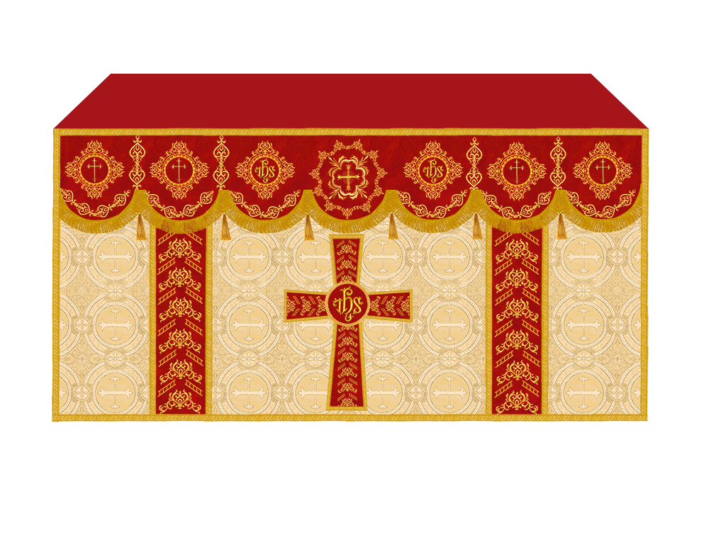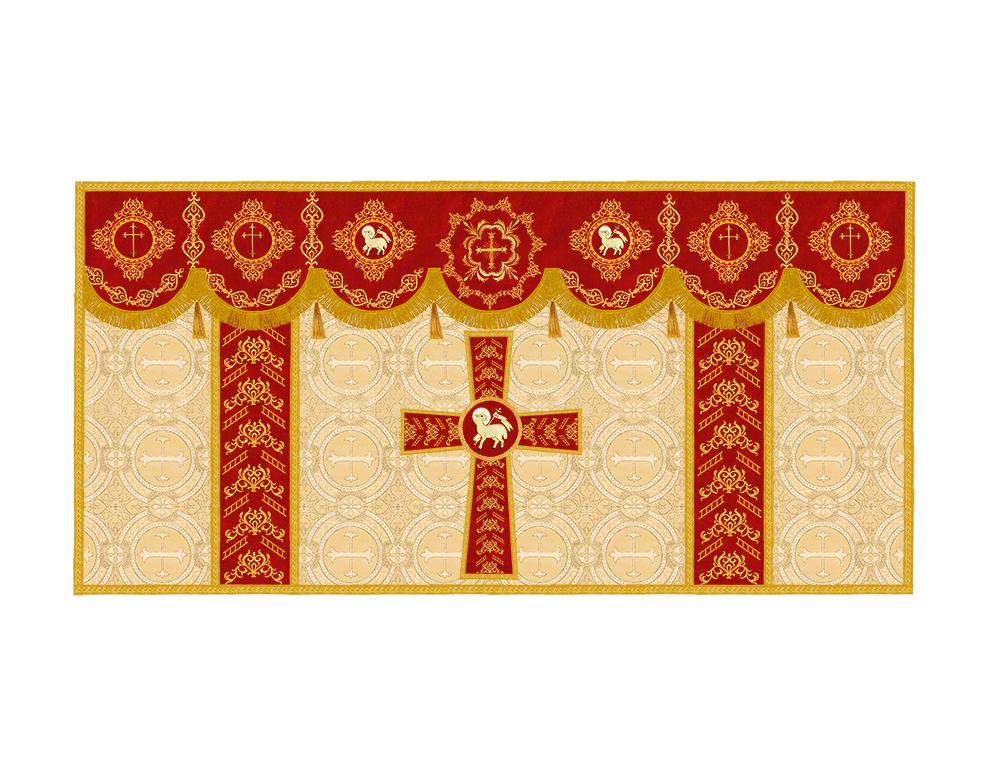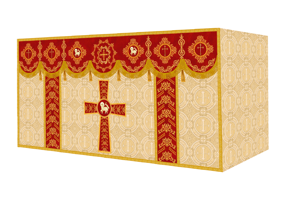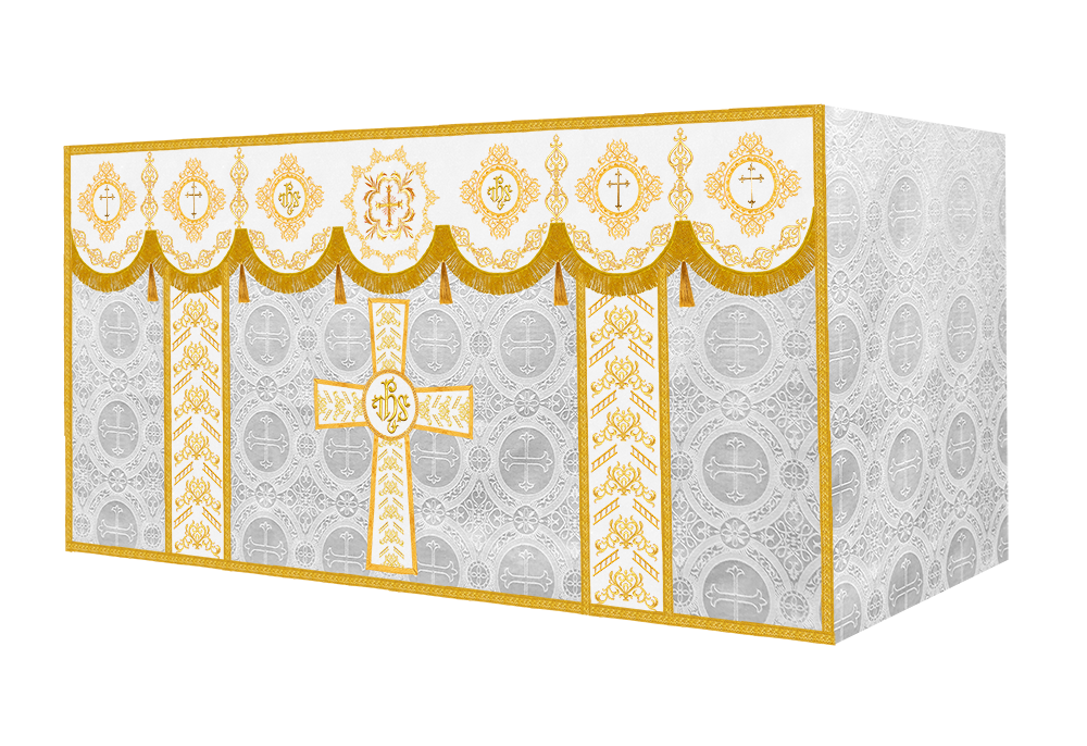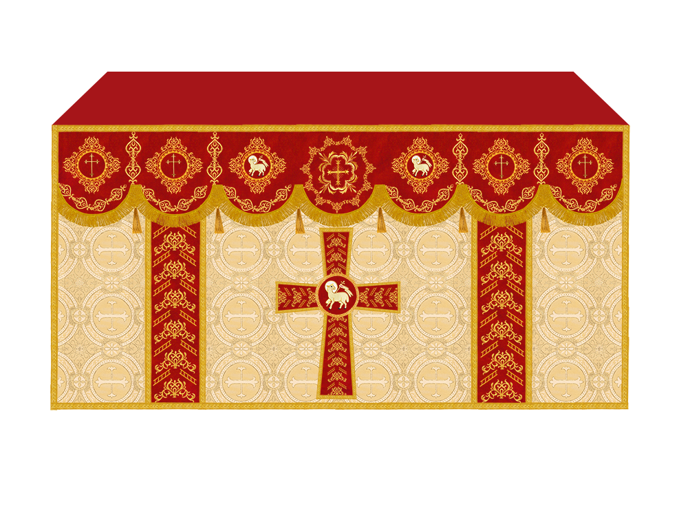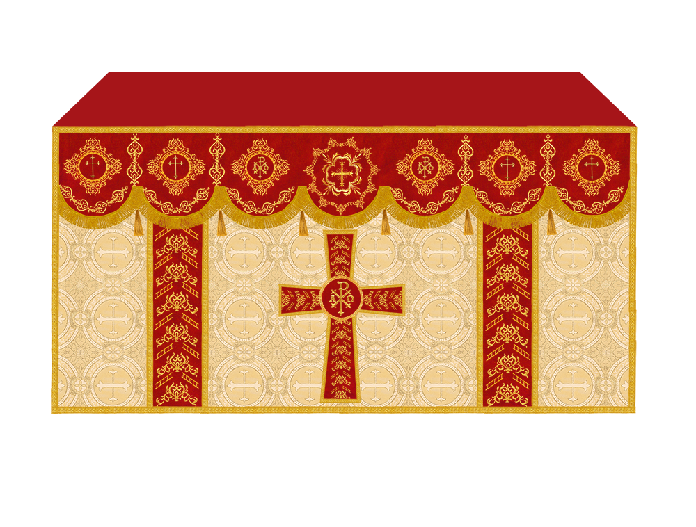 The altar frontal is made of fine fabric with embroidered Spiritual Motif