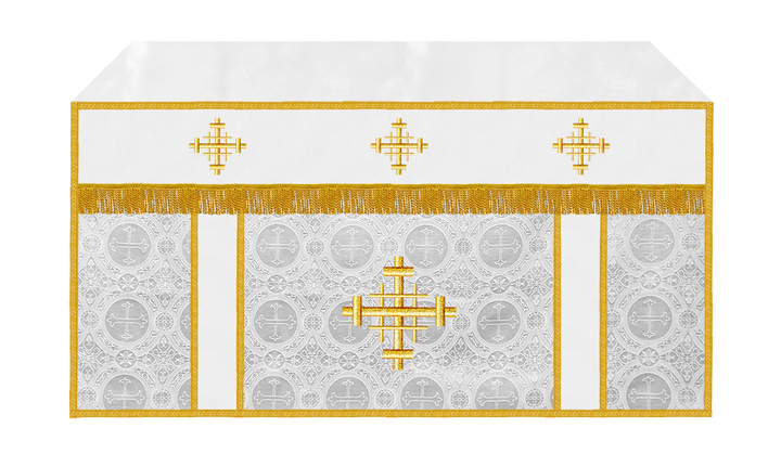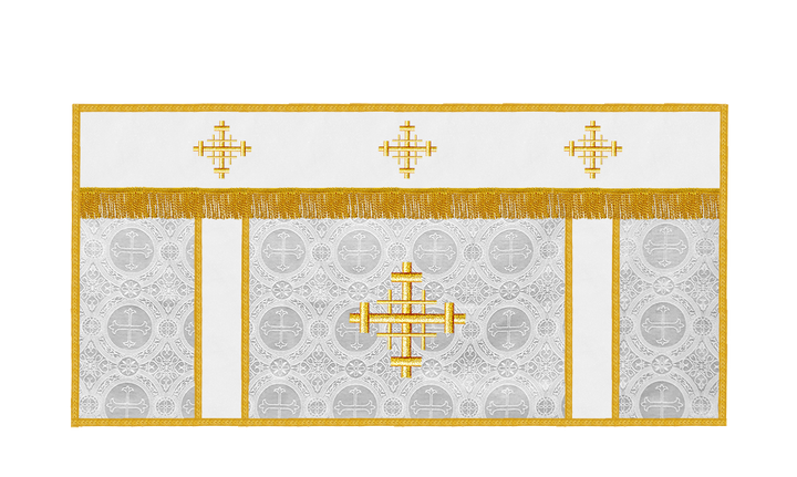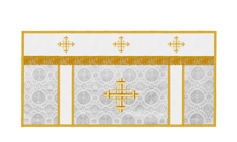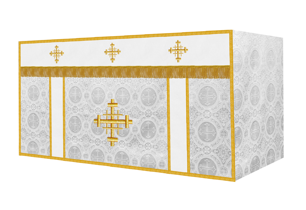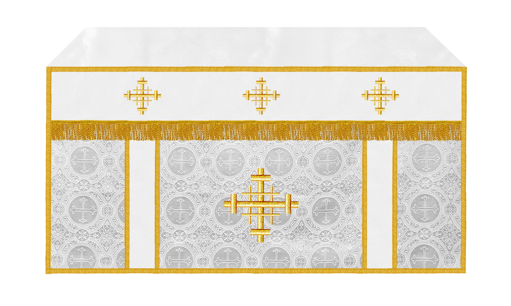 The altar frontal is made of fine fabric with embroidered Spiritual Cross Motif