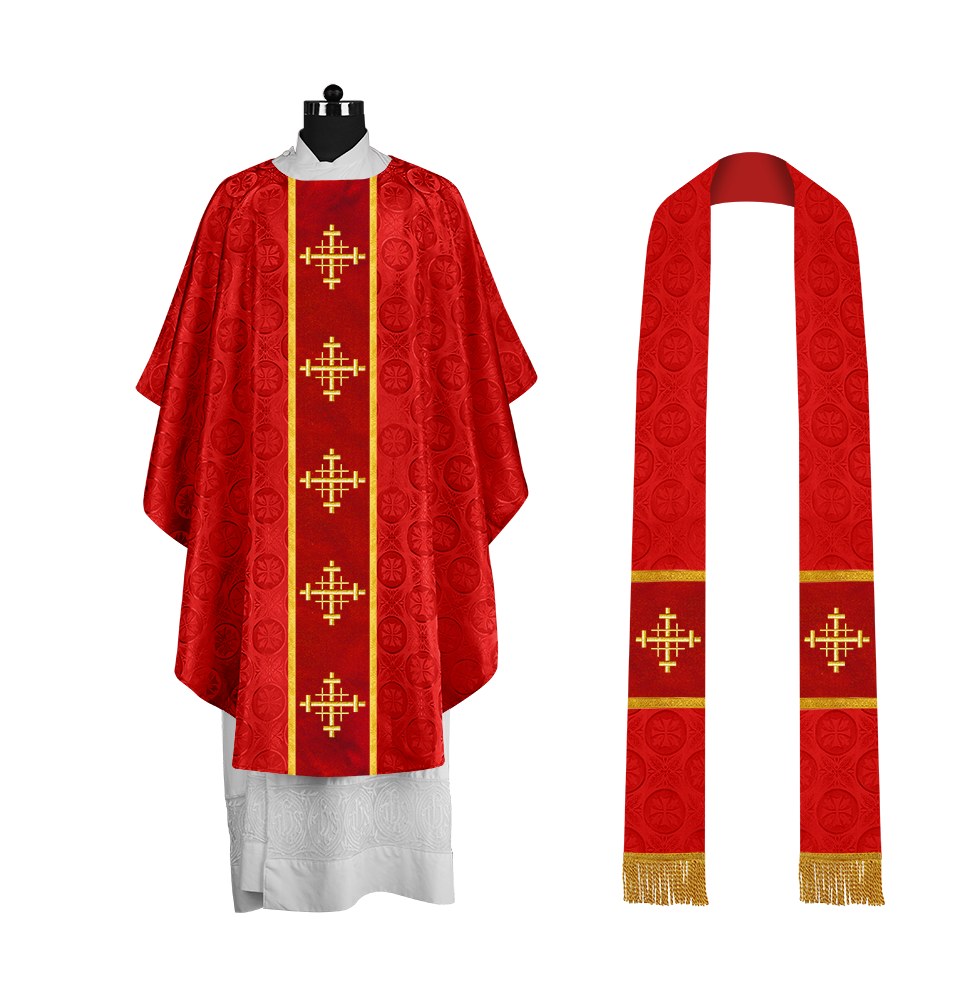 Handcrafted Gothic Chasuble with Cross Embroidered Orphrey