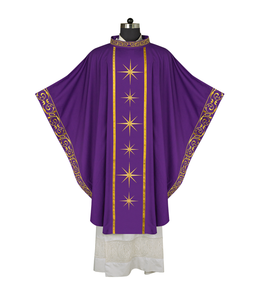 The chasuble is the most distinctive ancient Eucharistic vestment of the Christian church, cut away at first to leave the arms partly free. This shape is the so-called Gothic chasuble. The Gothic style was decorated with a Y shaped orphrey cross in the back and a single orphrey, called the pillar, down the front.