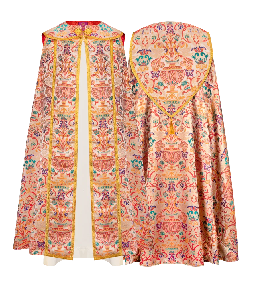 Gothic Cope Vestment has an exceptional orphrey with rich Woven Braids.