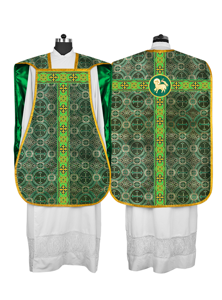 Fiddleback / Roman Chasuble Vestment is made of orphrey with ornate embroidery designs and motif.