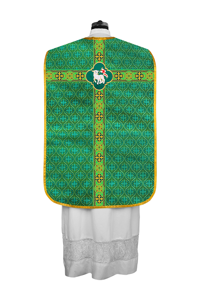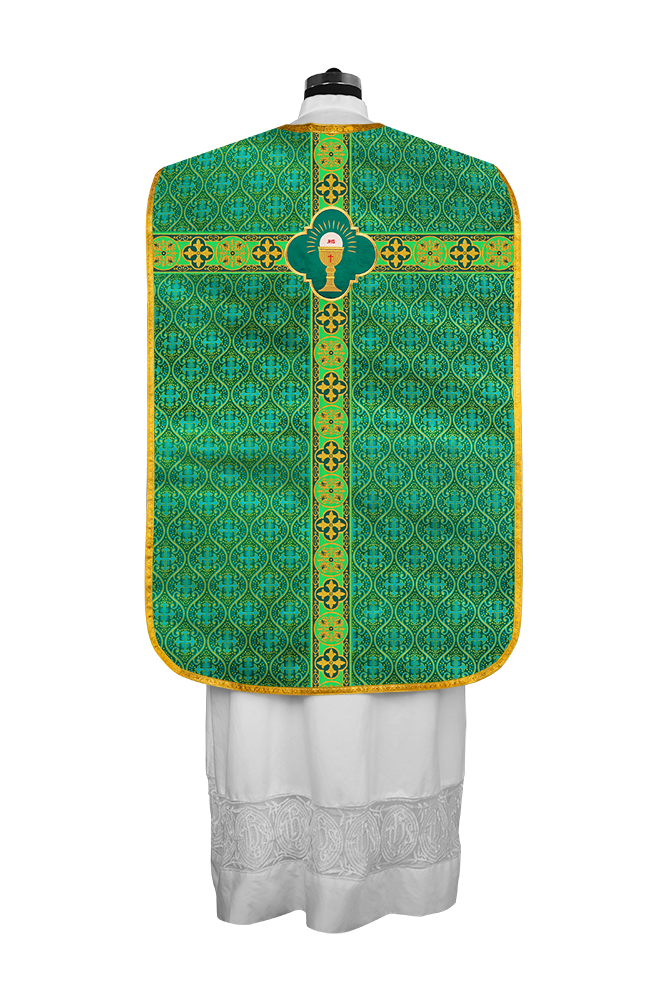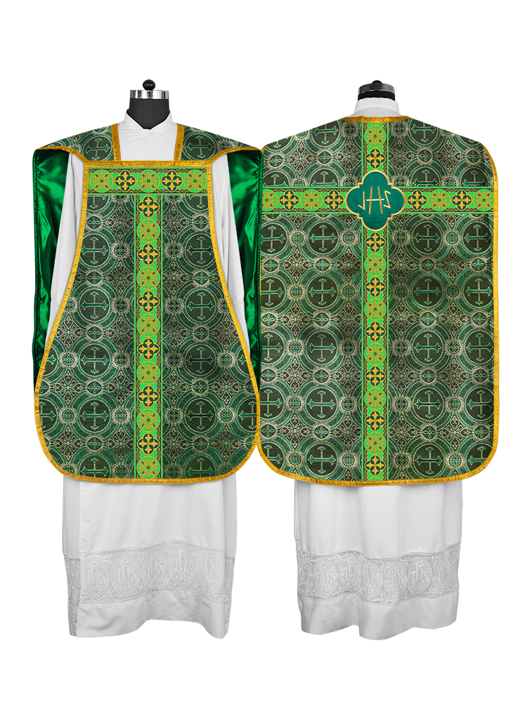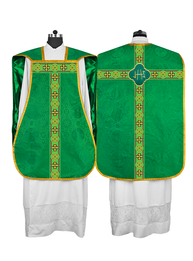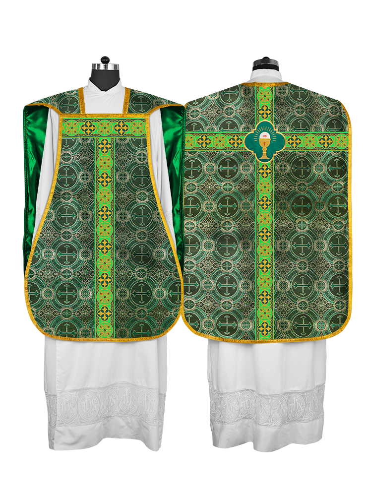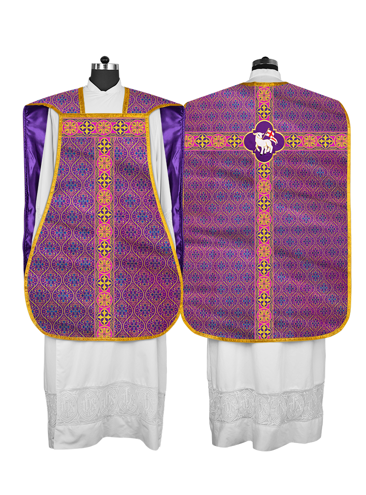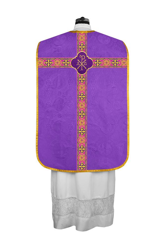 Fiddleback / Roman Chasuble Vestment is made of orphrey with ornate embroidery designs and motif.