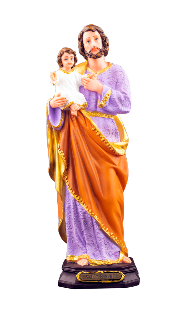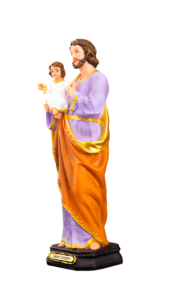 Detailed Design: Saint Joseph is shown holding the Child Jesus, with intricate detailing highlighting their loving bond.