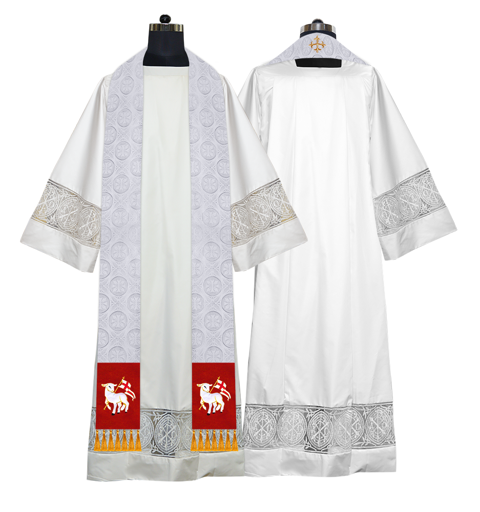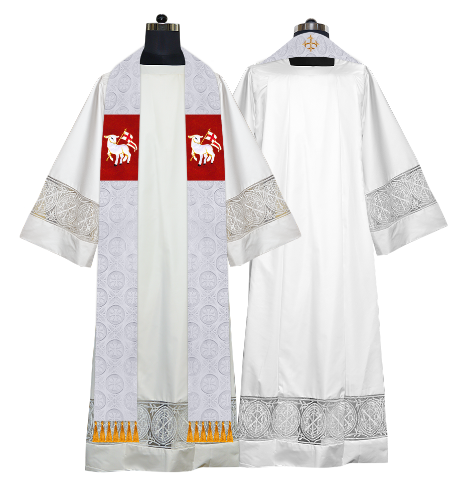 The Stole is well embellished with embroidered liturgical motifs.