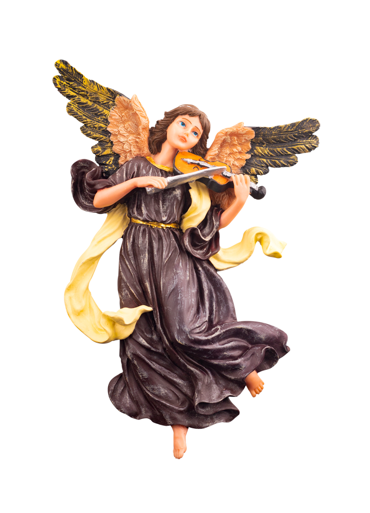 Violin of Divine Harmony: Angel tenderly holds a violin, representing sacred music and spiritual serenity.