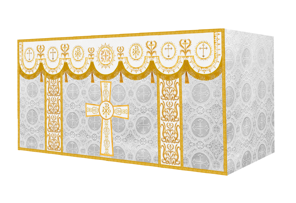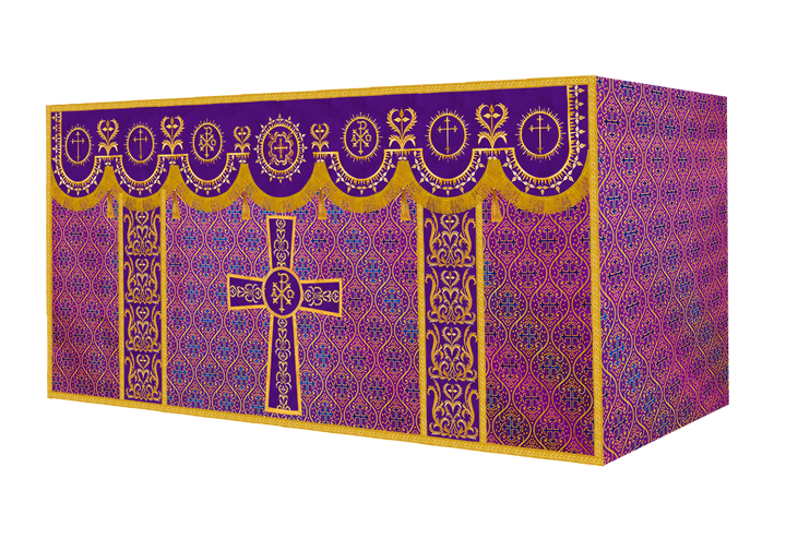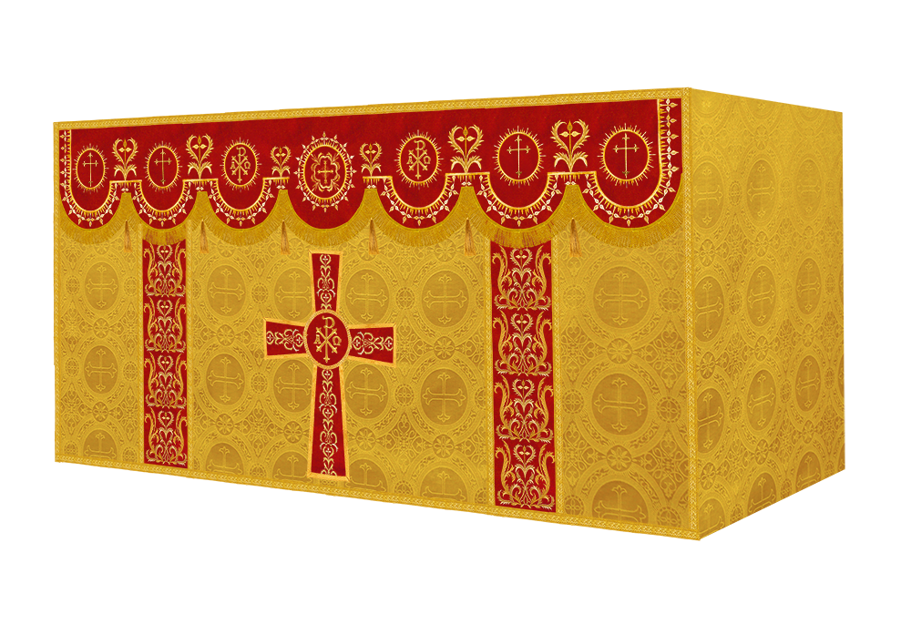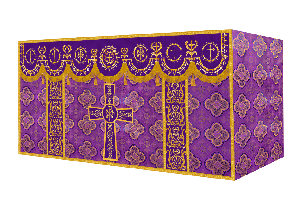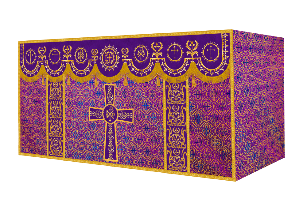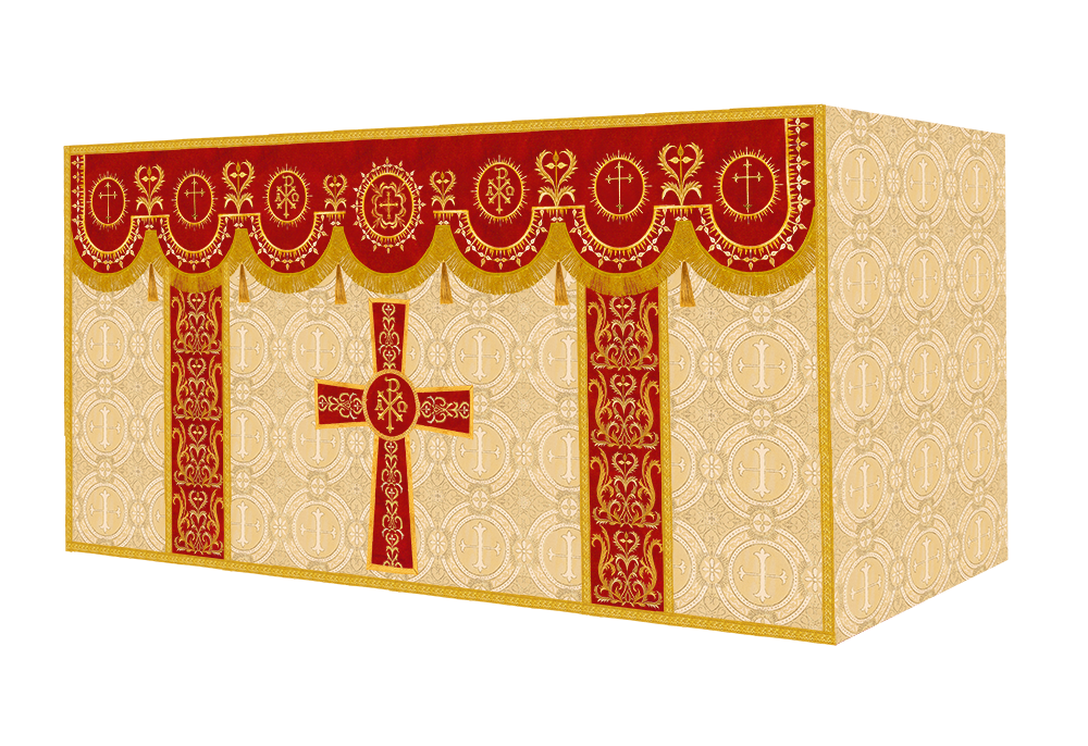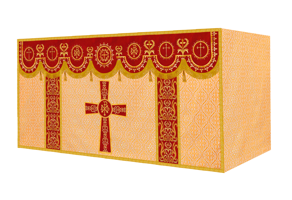 The altar frontal is made of fine fabric with embroidered Spiritual Motif