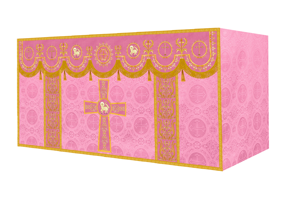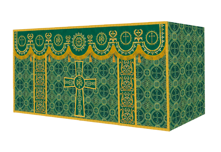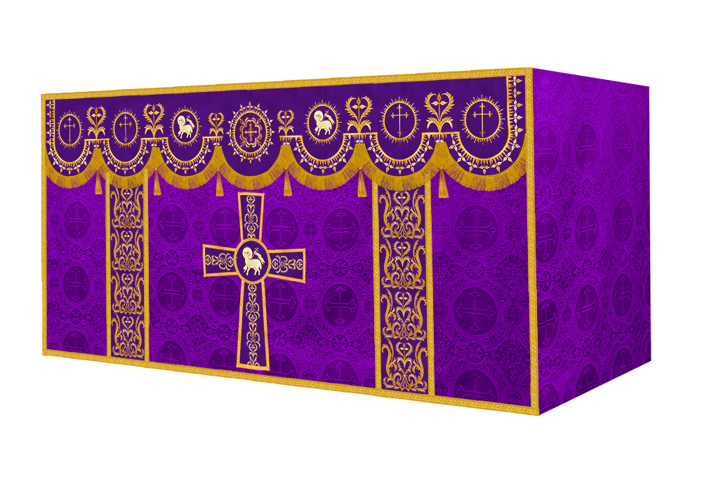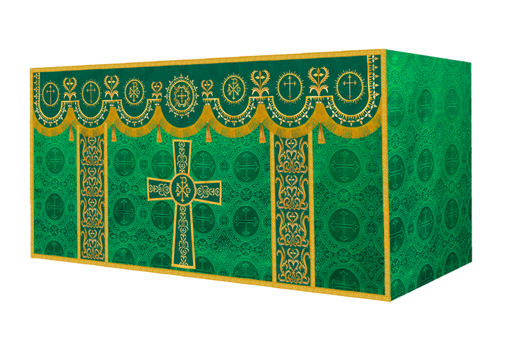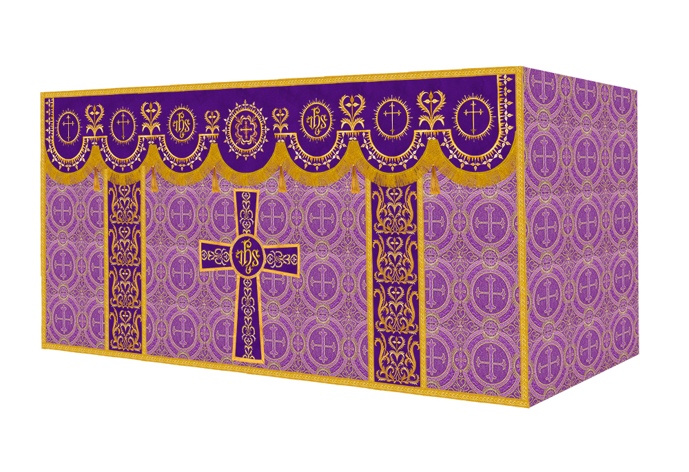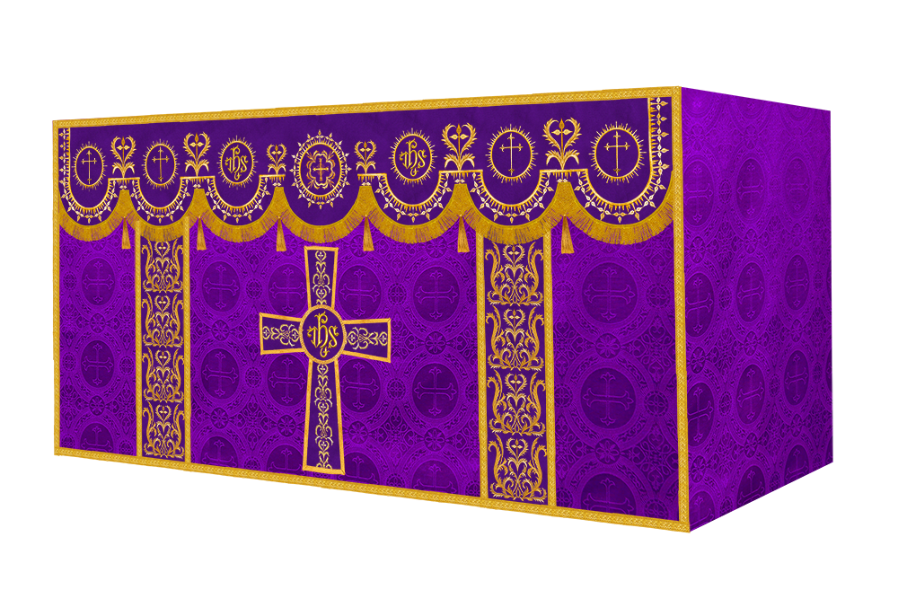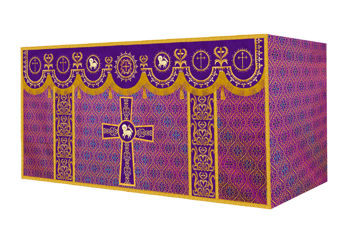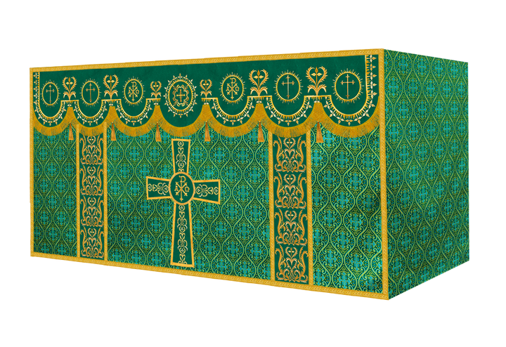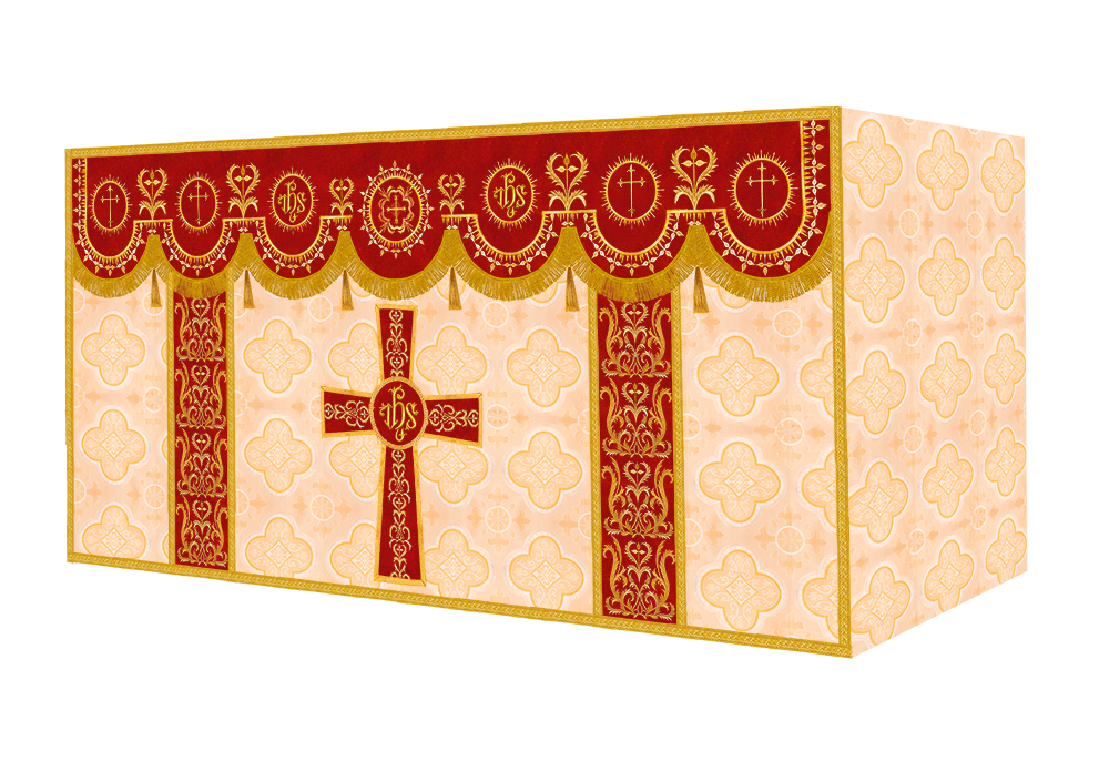 The altar frontal is made of fine fabric with embroidered Spiritual Motif