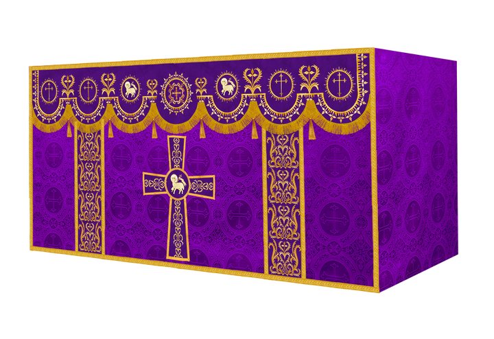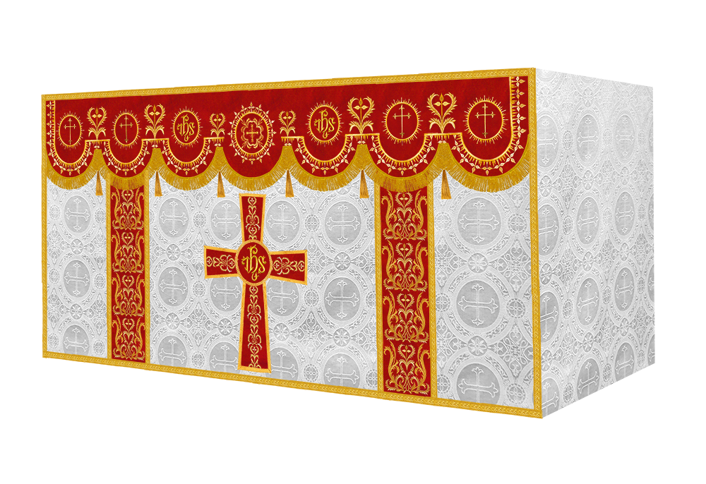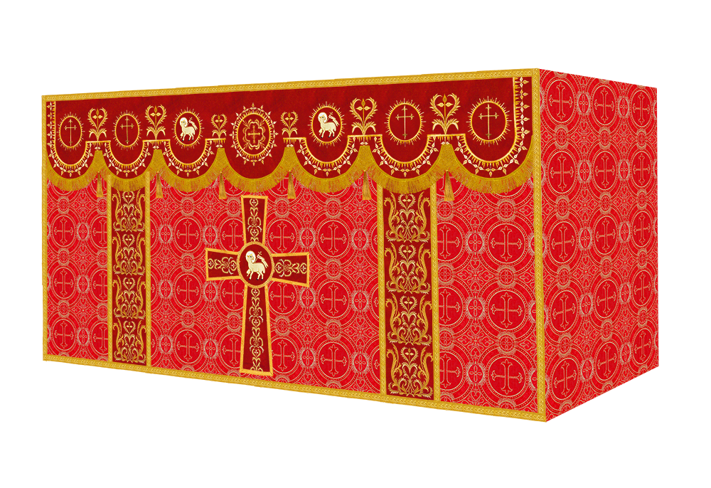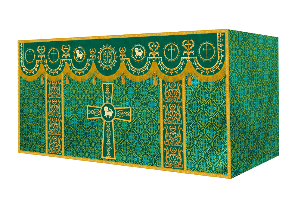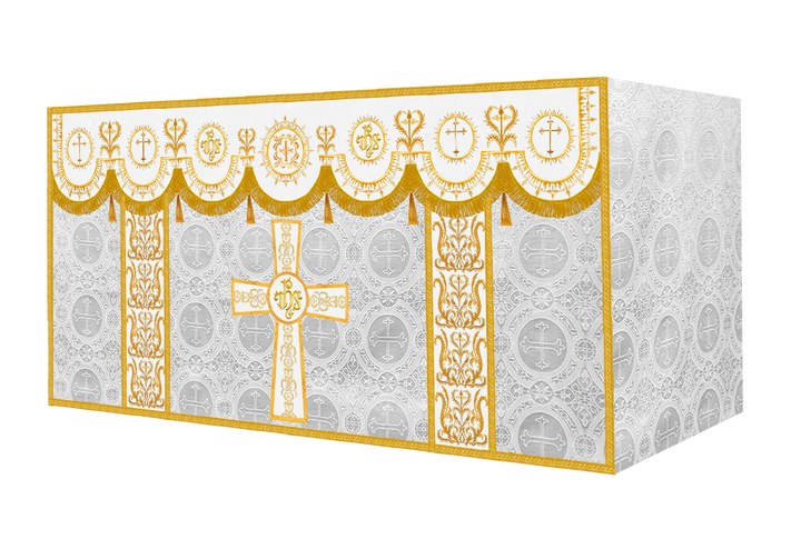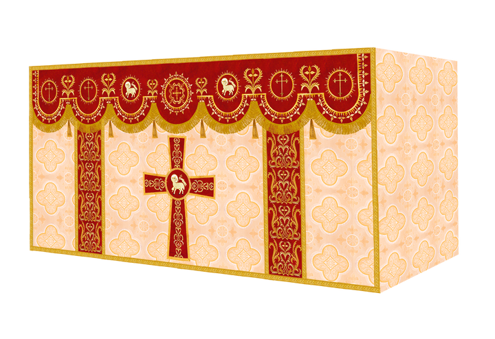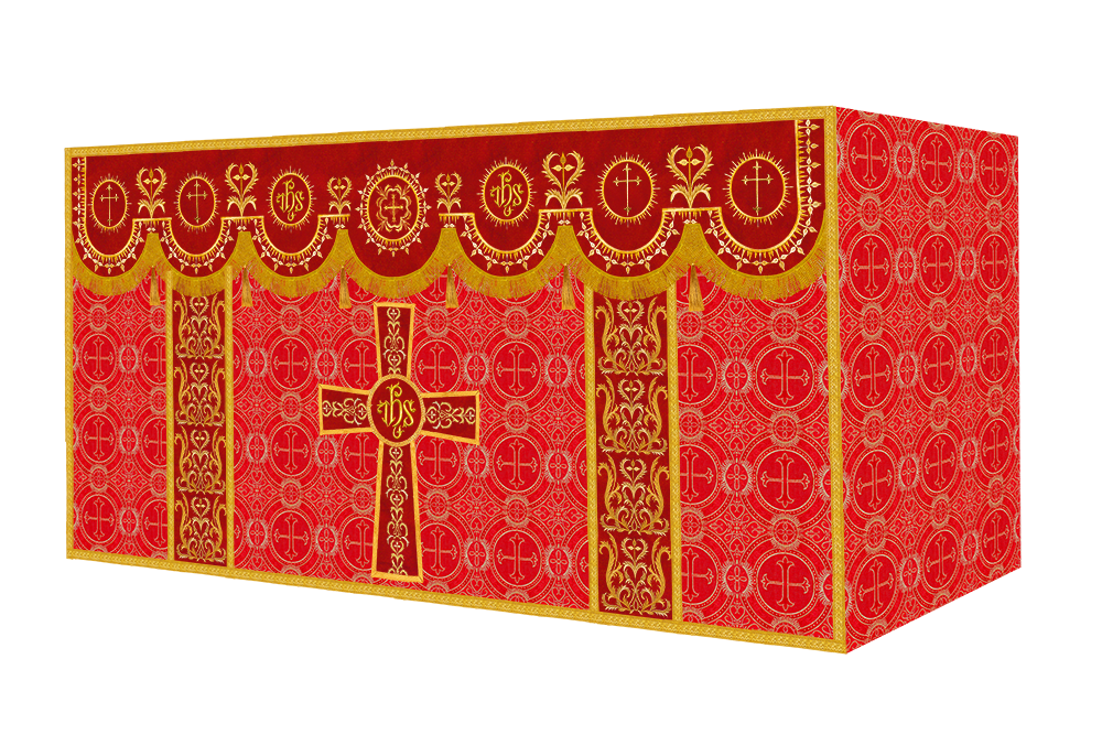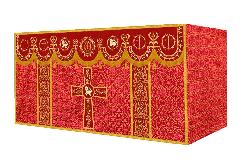 The altar frontal is made of fine fabric with embroidered Spiritual Motif