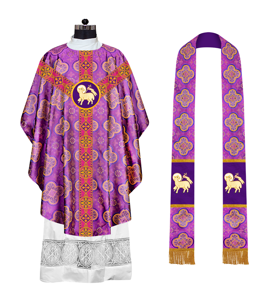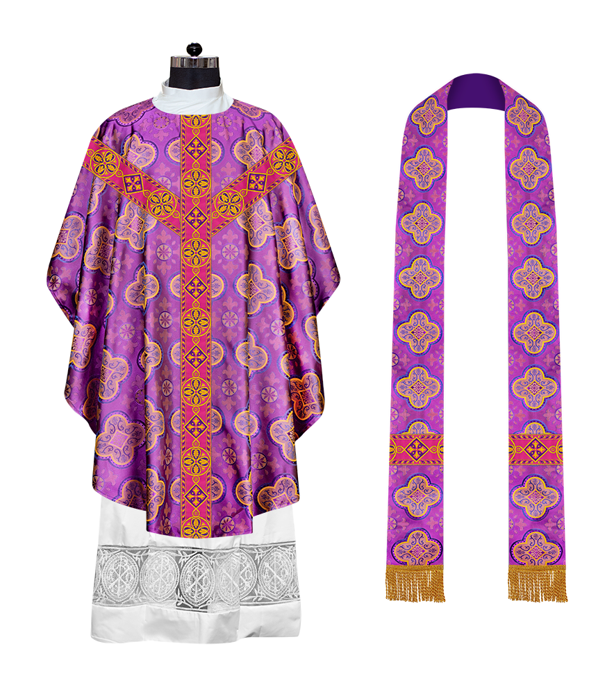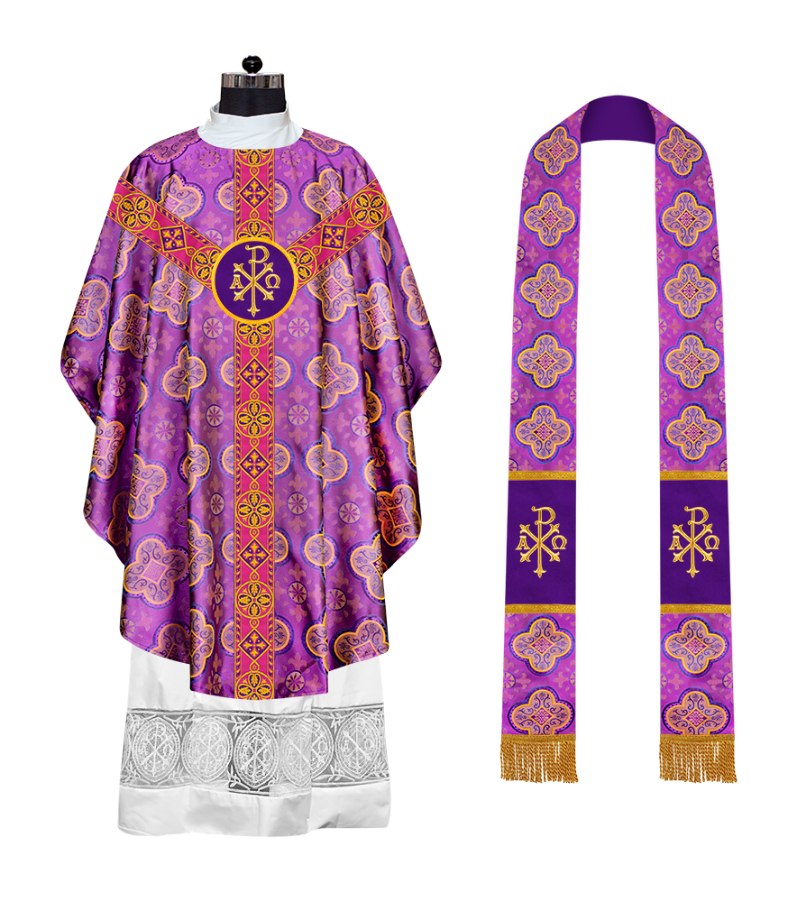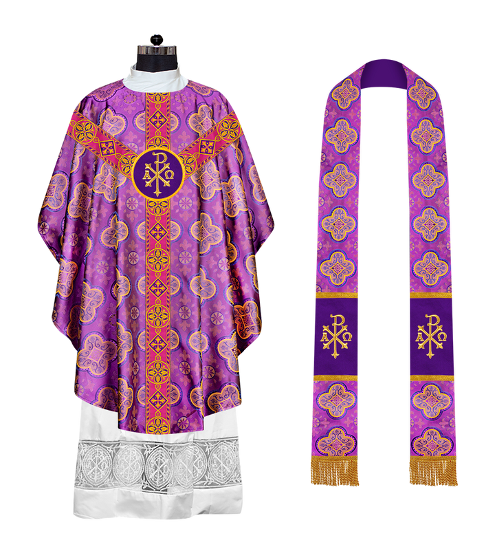 ● The Y-type orphrey of the Gothic Chasuble is made of rich woven braids.