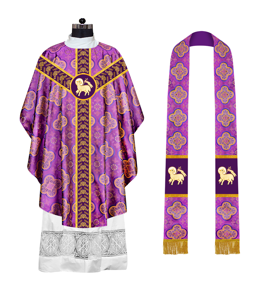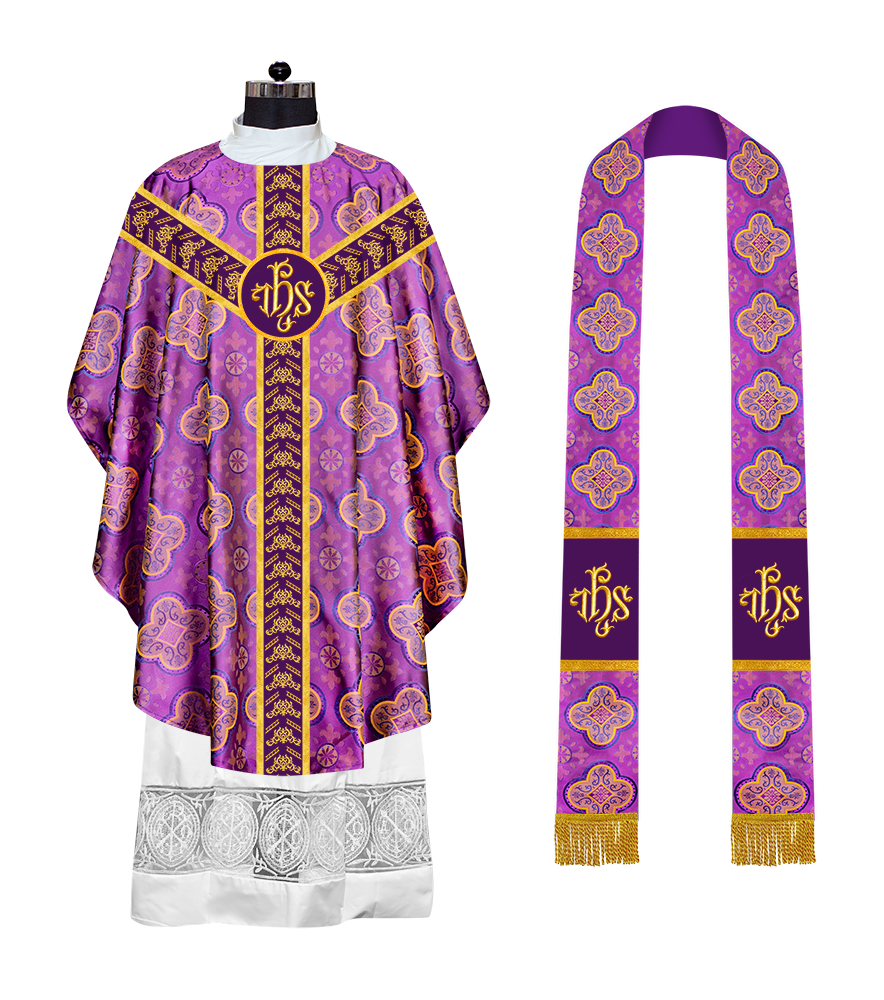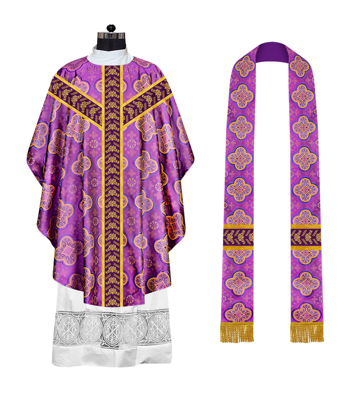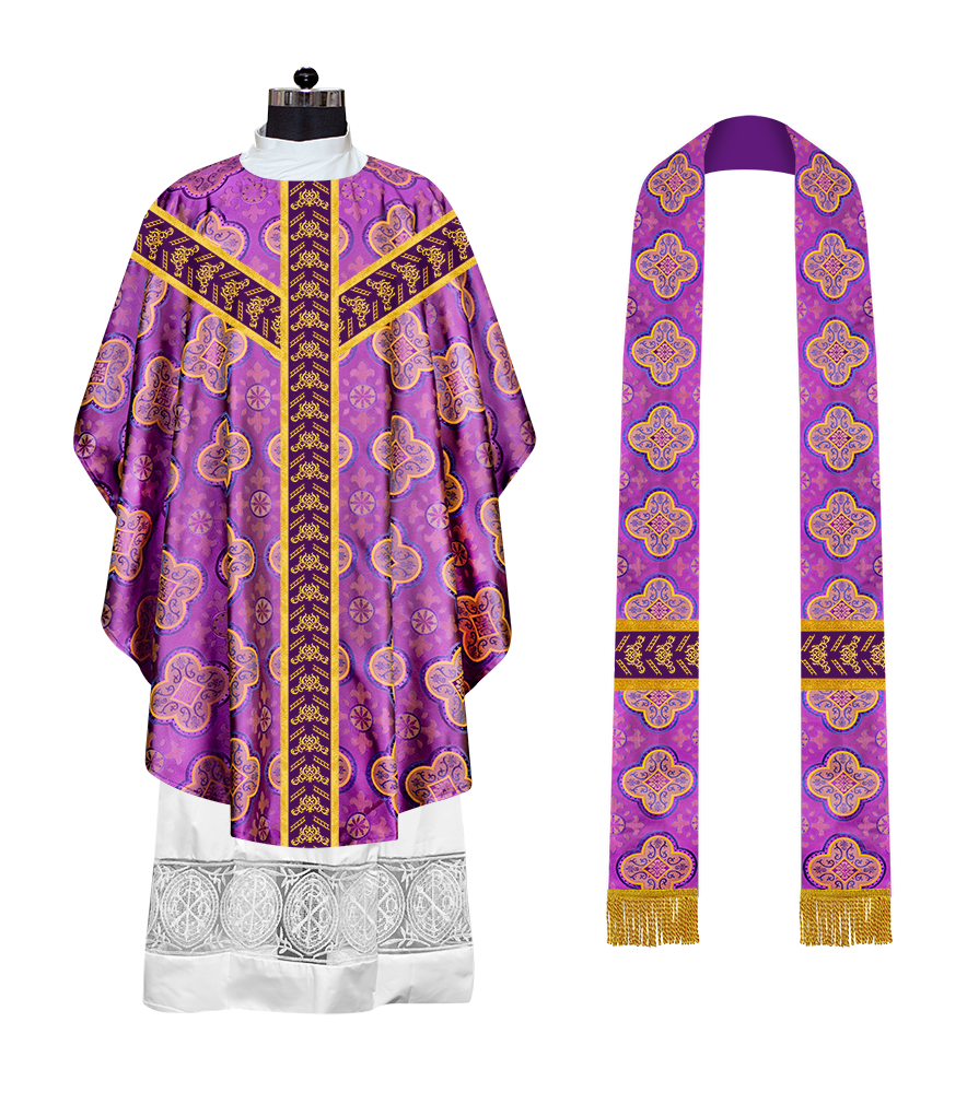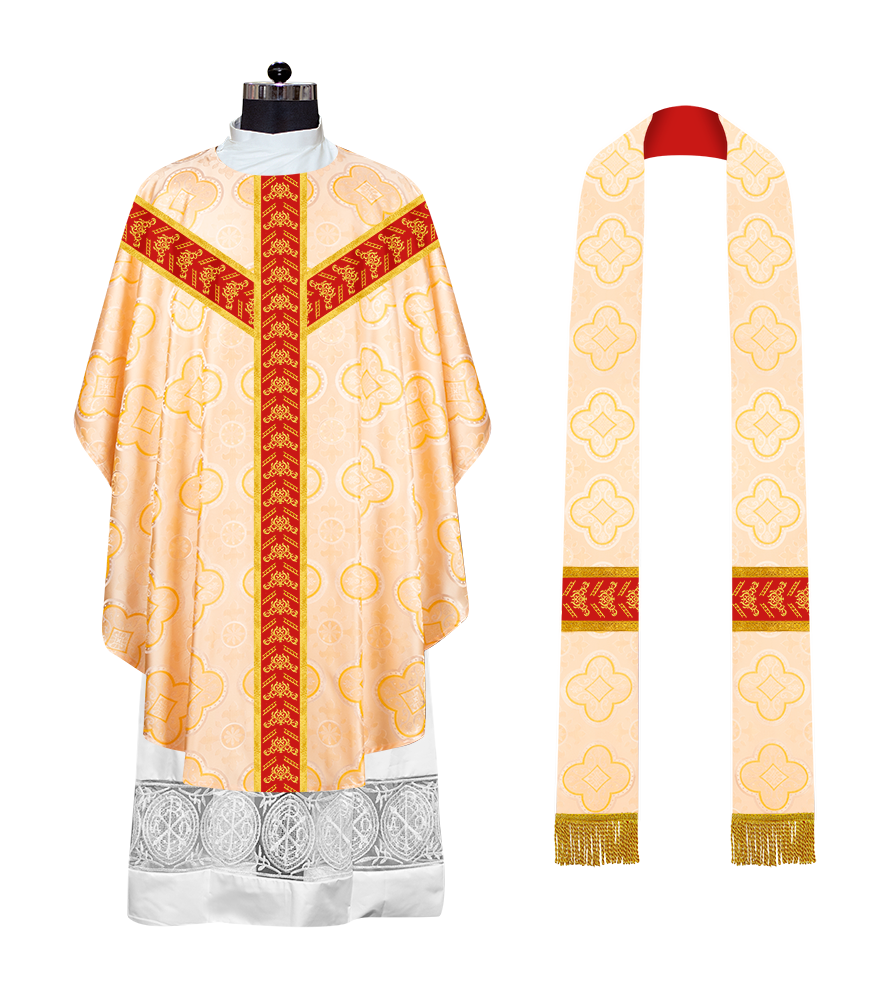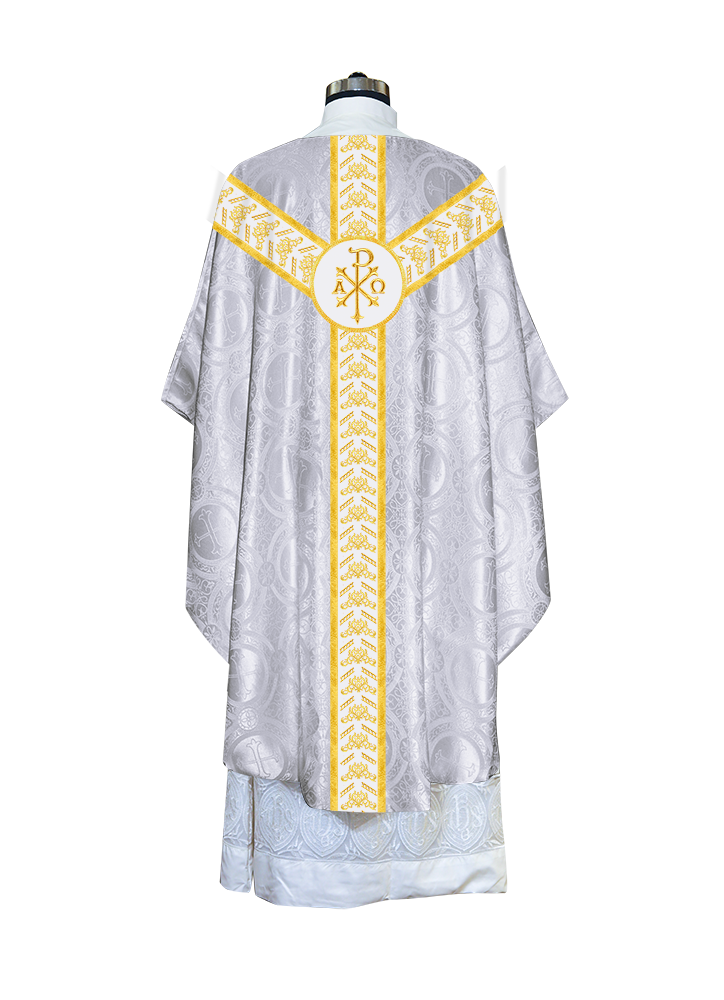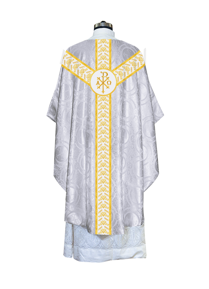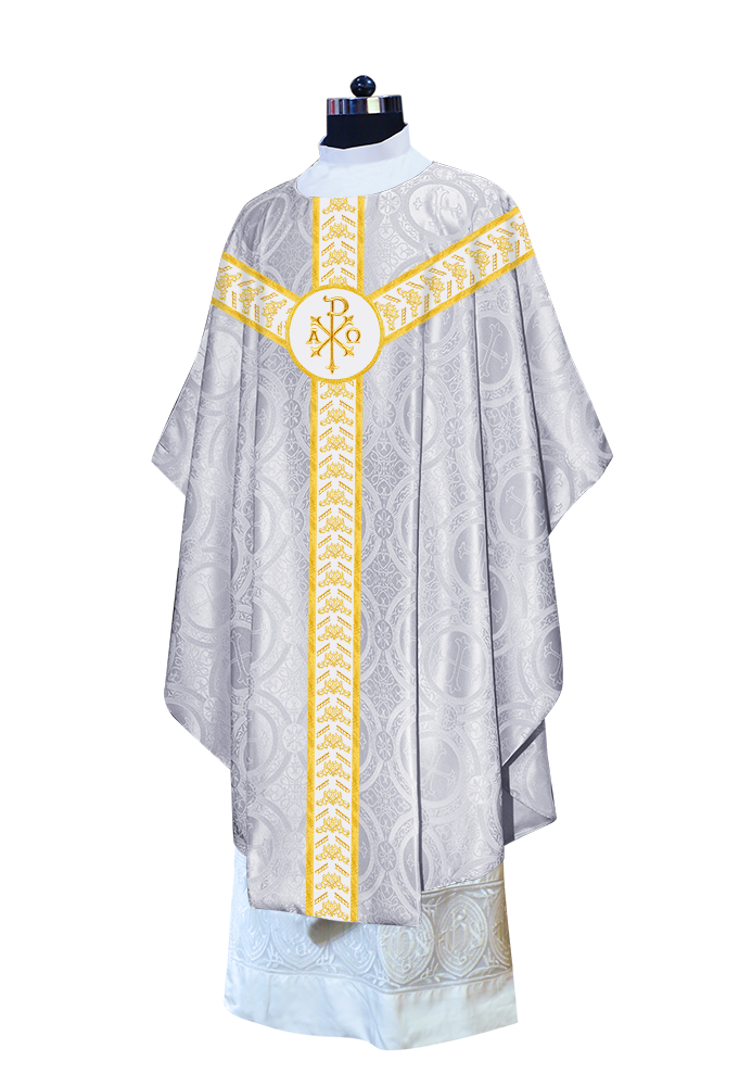 ● The Y-type orphrey of the Gothic Chasuble is made of ornate embroidery designs.