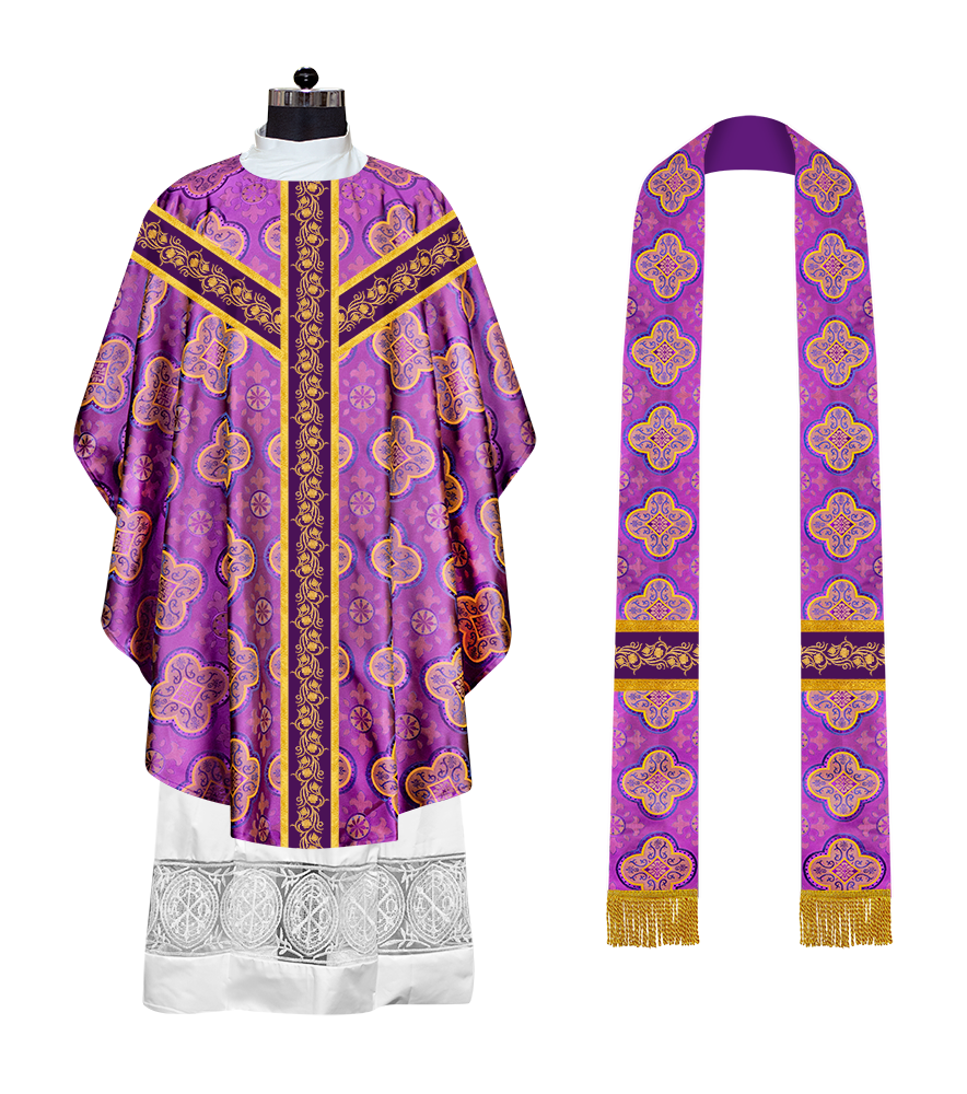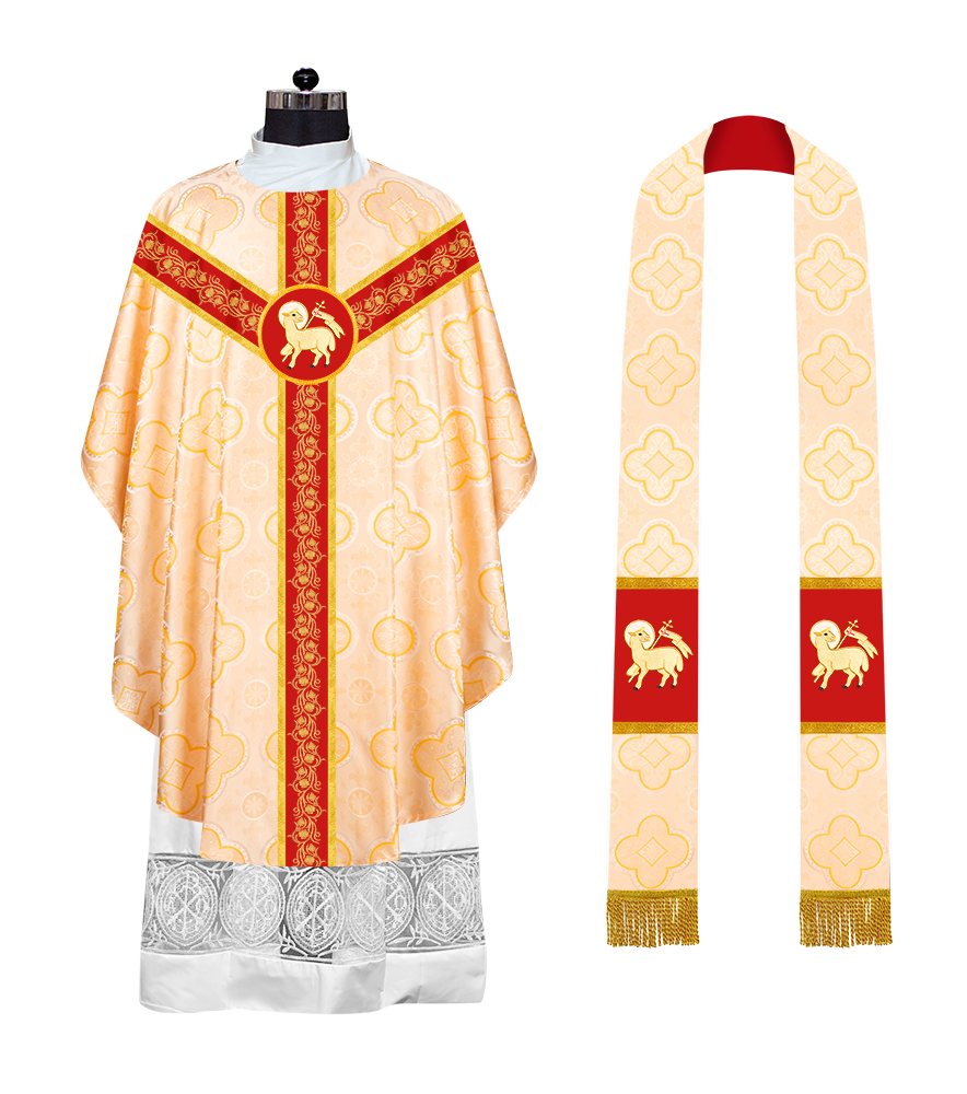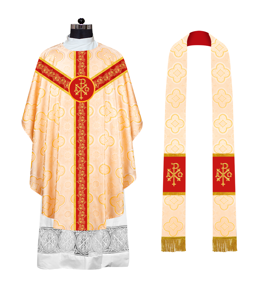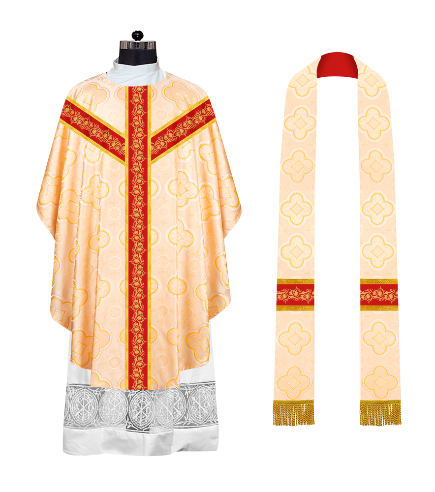 ● The Y-type orphrey of the Gothic Chasuble is made of ornate embroidery designs.