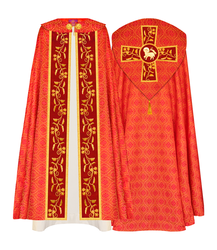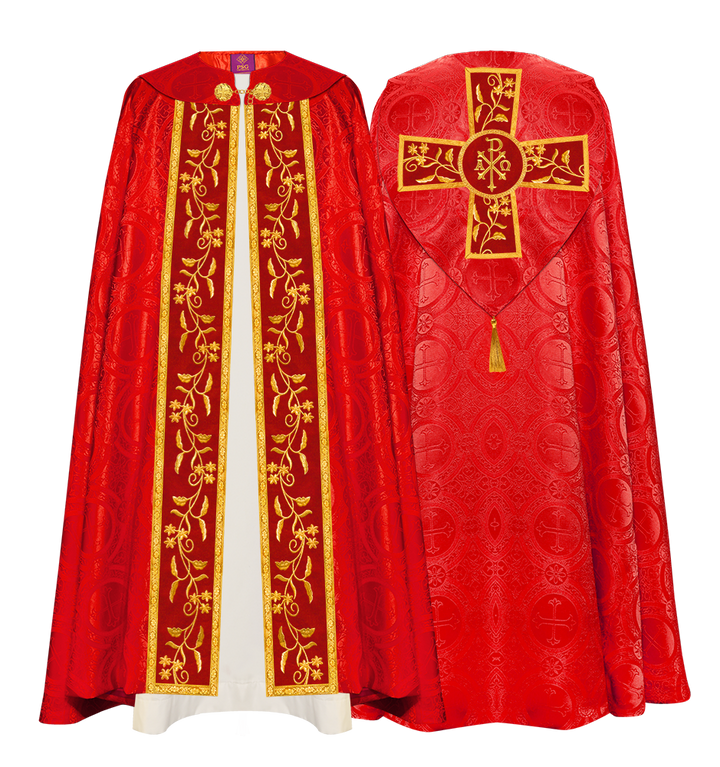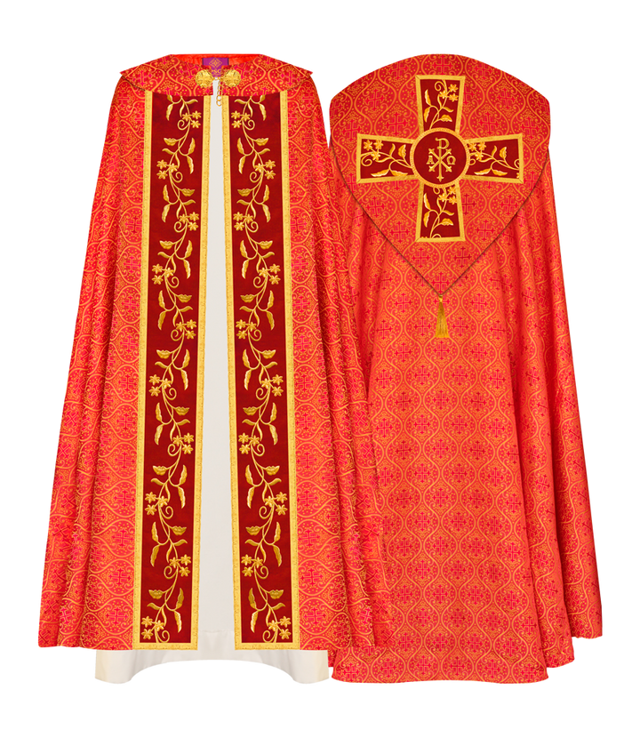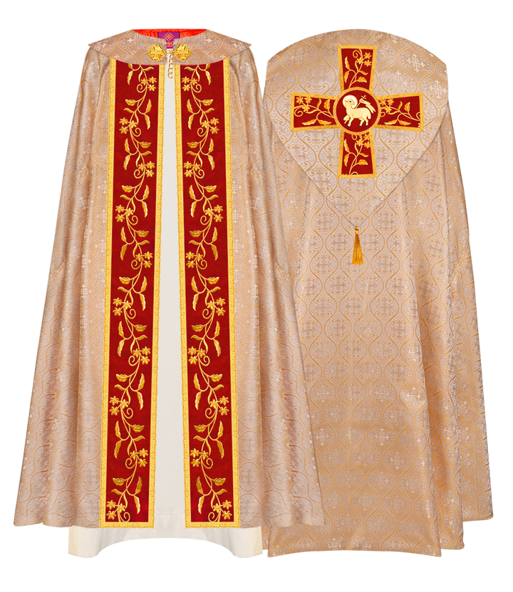 • Gothic Cope Vestment has an exceptional orphrey with ornate embroidery designs.