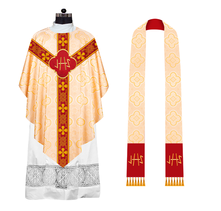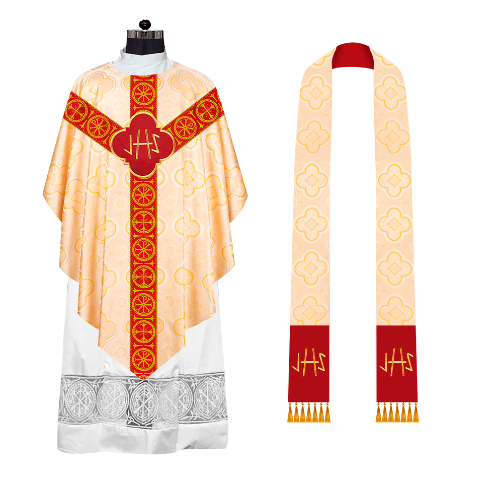 ● The Gothic Chasuble is exceptionally made with rich woven braids in Pugin style.