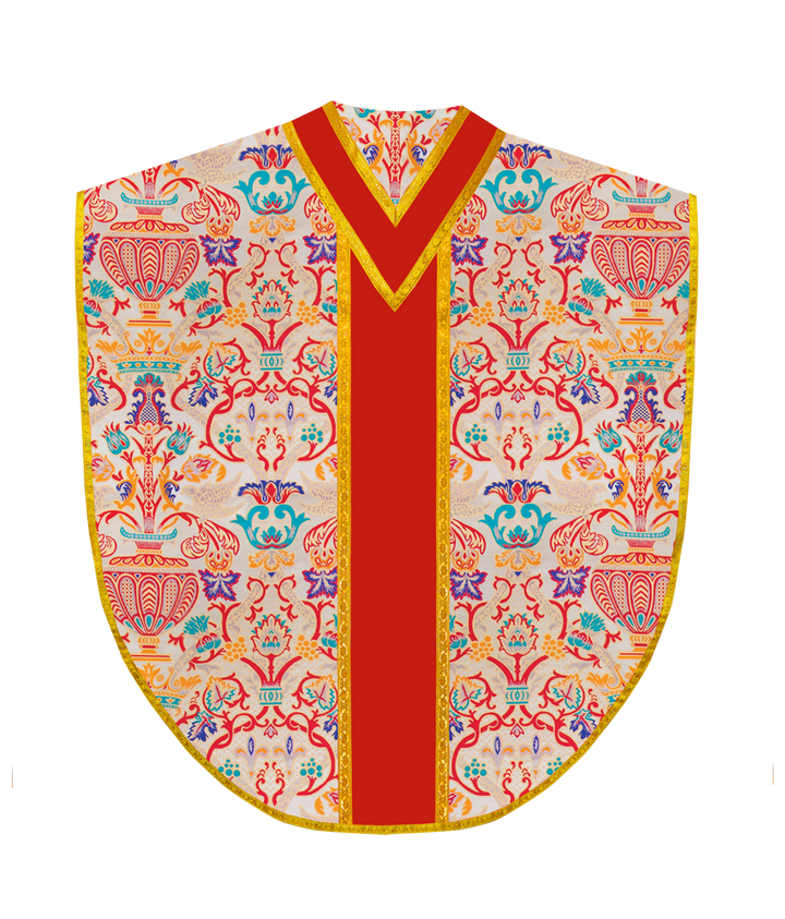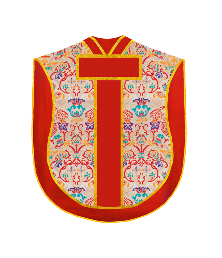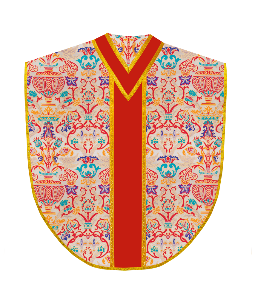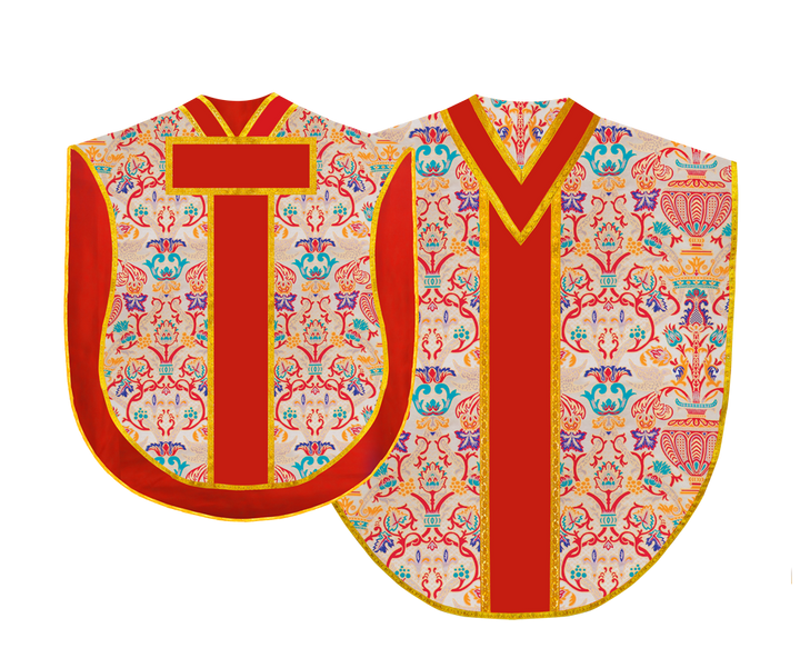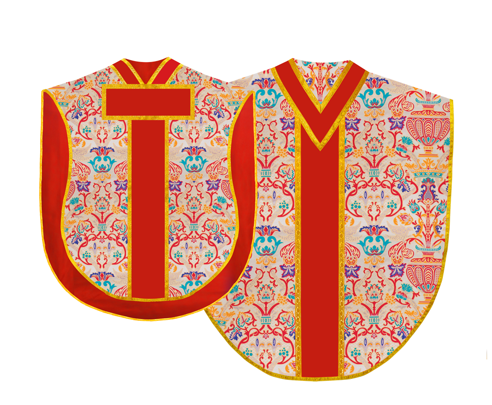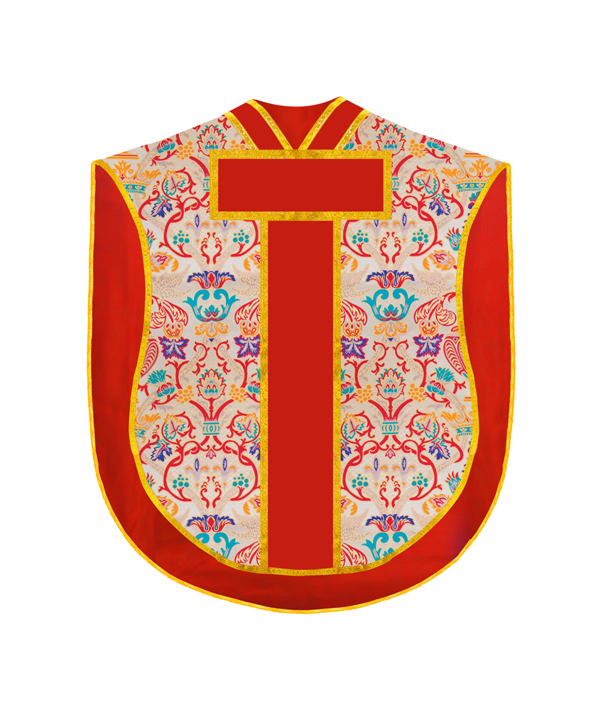 Borromean Chasuble/ St. Philips Vestment is made of orphrey with classic red coronation tapestry.